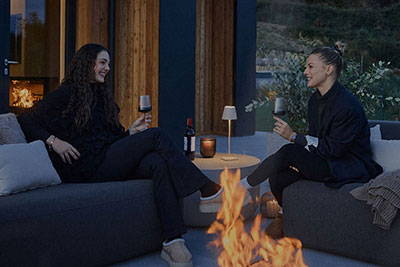 Il piano terra dello Chalet si sviluppa in un open space luminoso con zona giorno, cucina, bagno di servizio e area relax. La panoramica sauna finlandese si affaccia sulle colline casentinesi e sul Castello di Romena e offre momenti di benessere fisico e mentale grazie anche all’atmosfera creata dal vicino camino a legna con vetro angolare. All’esterno l’ampia terrazza panoramica avvolta da querce e faggi, è arredata con divani, tavolini e un ampio braciere: è un invito a sedersi e a concedersi un tè, un caffè o a condividere una bottiglia di vino selezionata tra le etichette presenti nella cantinetta a disposizione degli ospiti.